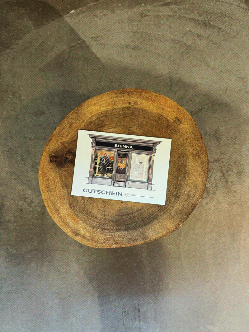 Ein Gutschein für Menschen mit Sinn für Charakter, Qualität und gute Geschichten. Einlösbar im SHINKA Store in Rapperswil oder online. Gilt für die gesamte Auswahl an kuratierten Vintage-Pieces – von Denim über Workwear bis hin zu seltenen Fundstücken.