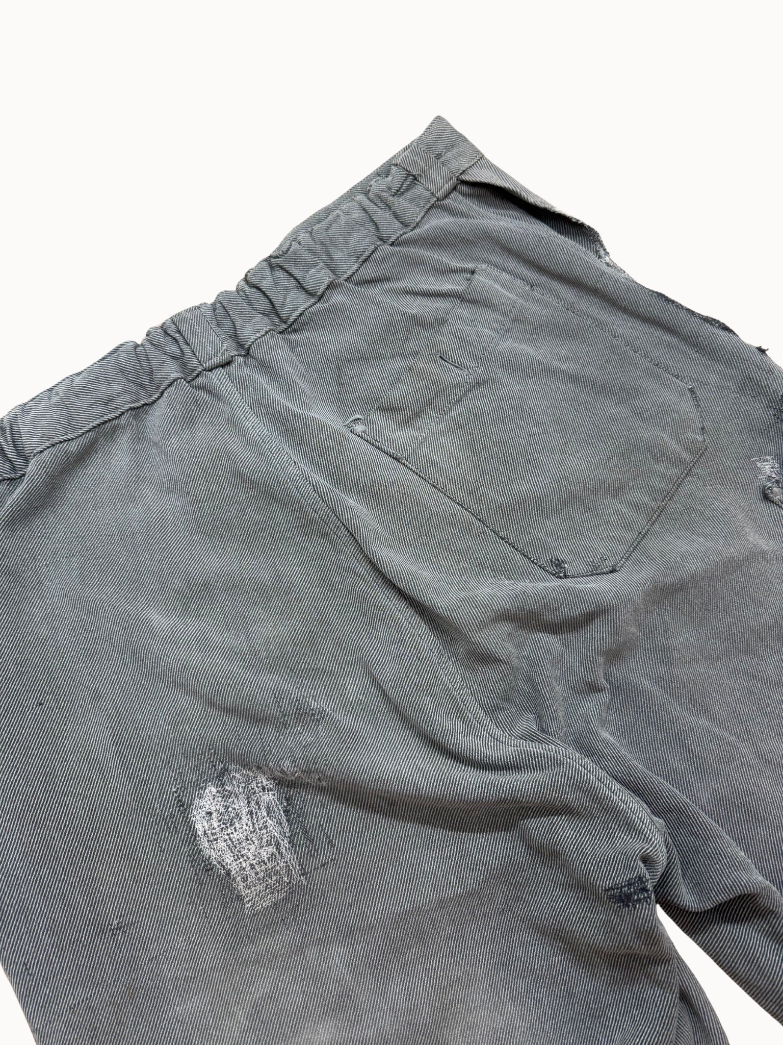 Zustand: stark getragen, mehrfach repariert, depot-style Patches, ziviler Elastikeinsatz hinten