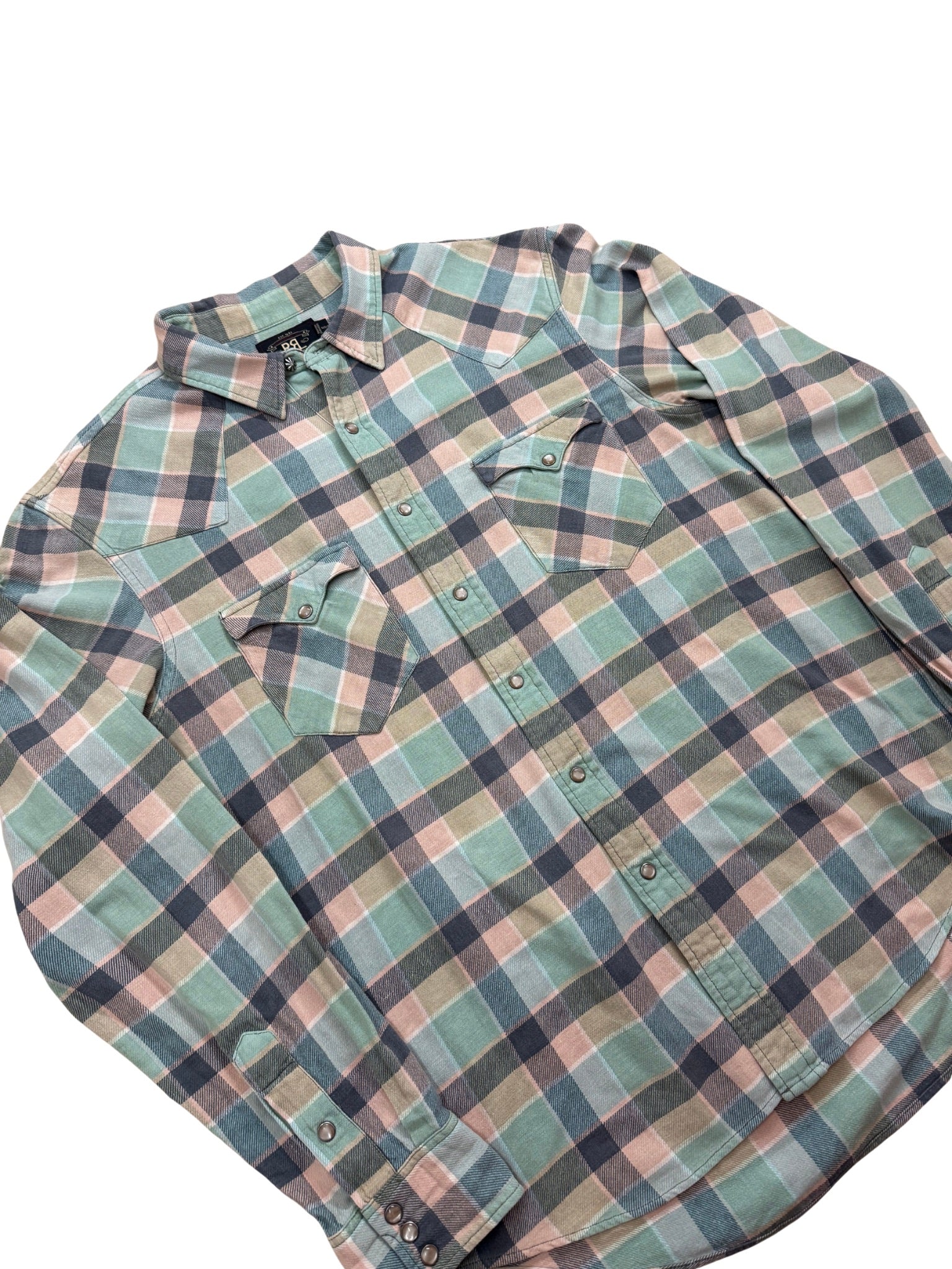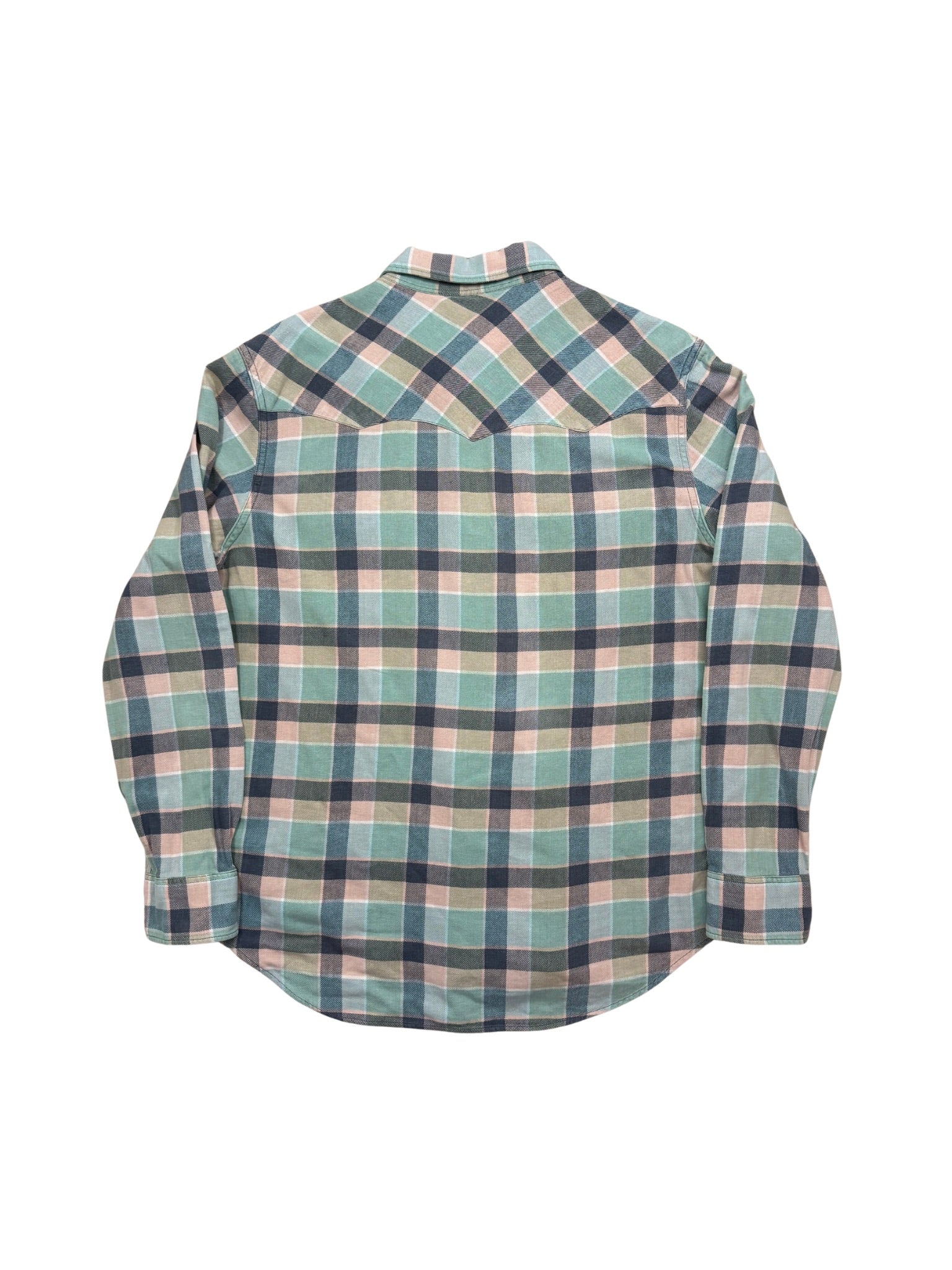 Double RL Western Snap Flannel Shirt – Mint / Faded Pink / Slate Check (XL)