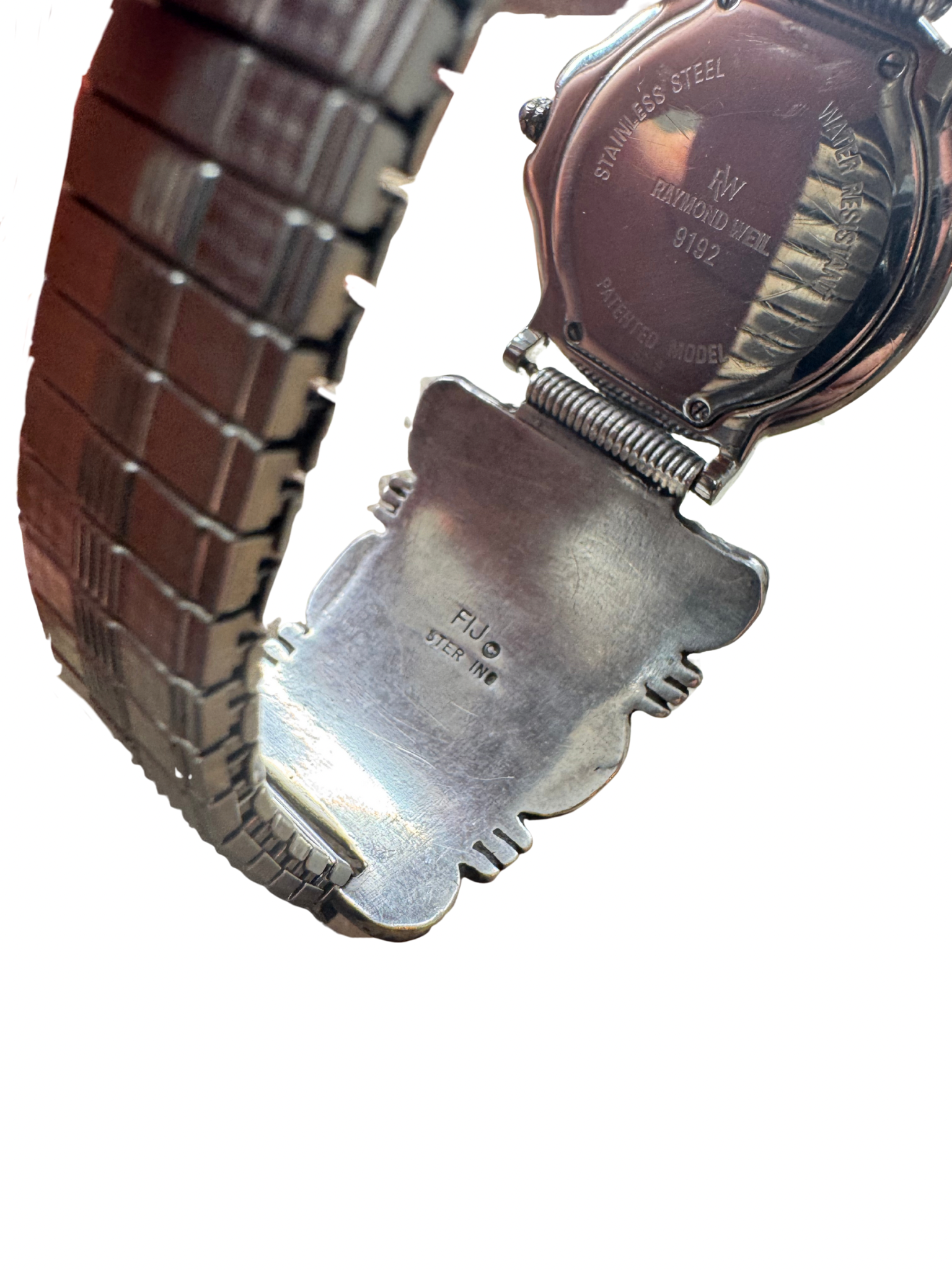 Das Armband trägt die Signatur “FJ – Sterling”, ein Hinweis auf seine Herkunft aus dem Südwesten der USA.