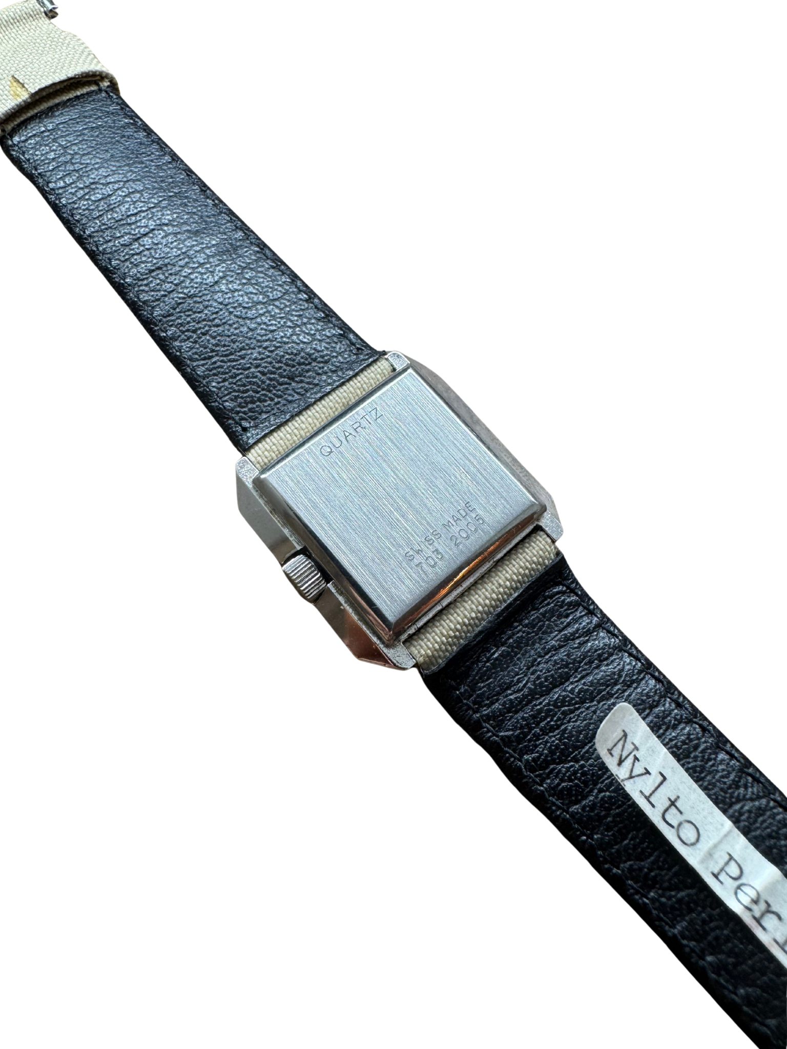 Markante Linien, klare Geometrie und Schweizer Präzision. Diese rechteckige Rotary Uhr aus den späten 1970er bis frühen 1980er Jahren besticht durch ihr charakteristisches Quarzwerk und das strukturierte Gehäuse – ein Statement-Piece aus der Hochzeit des modernen Uhrendesigns.