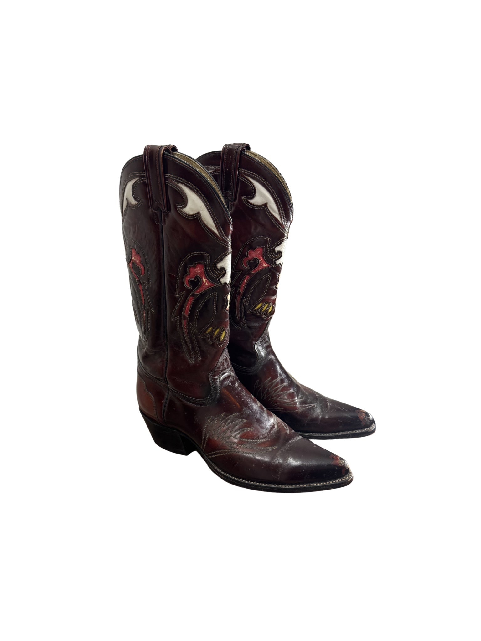 Vintage Handcrafted Western Cowboy Boots – Burgundy (43-43.5)