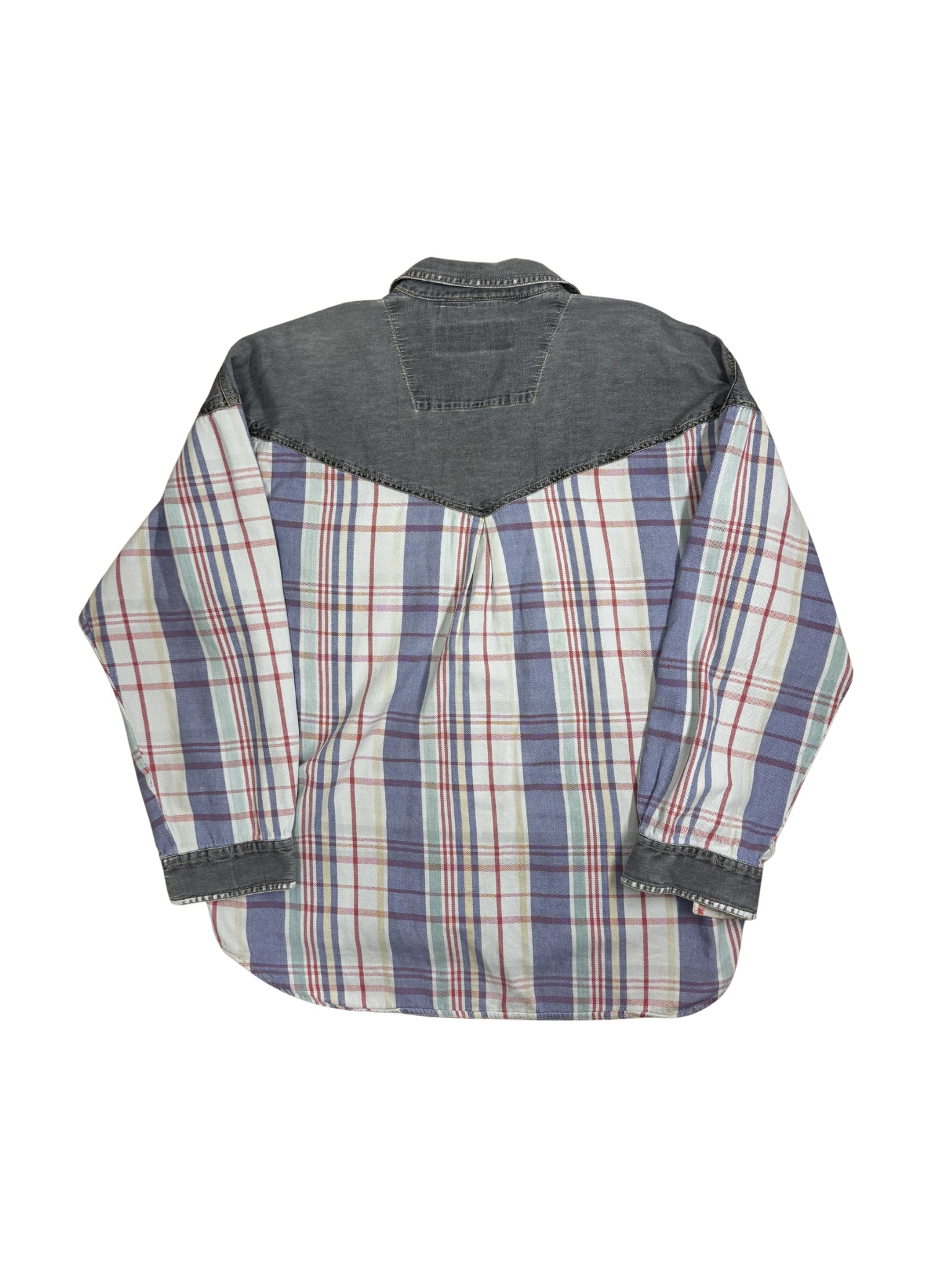 Vintage Western Patchwork Shirt – Denim & Plaid (L/XL)